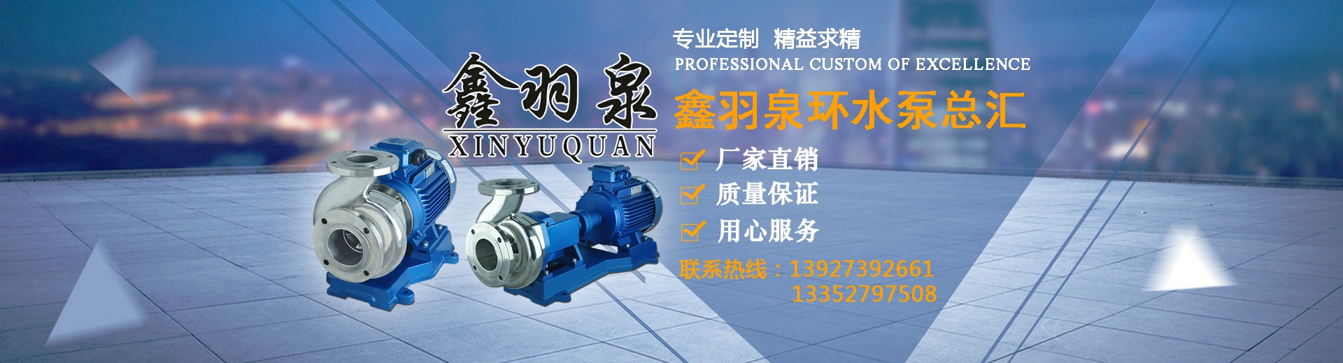 惠州鑫羽泉環保設備有限公司是廣東省規模最大的水泵機電設備公司之一。主營水泵,油泵,化工泵,多級泵,空調泵,離心泵,真空泵,液下泵,潛水泵,電機,不銹鋼泵,計量泵,供水設備,環保設備,冷卻塔,冷水機等是一家值得信賴的合作伙伴。品種齊全、質量過硬、價格合理,受到眾多用戶的好評。重信用、守合同、薄利多銷、質量第一、用戶第一、服務第一是我們經營的宗旨,公司擁有一批技術過硬、服務周到的銷售和技術團隊,愿意以最好服務,最好的技術,與所有新老客戶共同進步!不斷開發新品拓寬服務領域。公司現有產品共計近1000種規格。